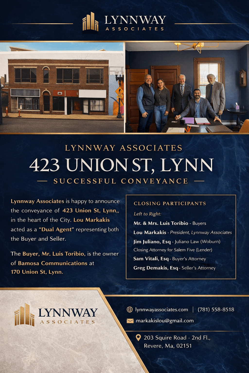Lou Markakis brings over 40 years of hands-on active real estate experience spanning four decades. Licensed first in California (1976) and then in Massachusetts (1980), his practice has evolved into a full-fledged brokerage firm focusing on residential and commercial sales, leasing, and permitting challenging real estate developments.